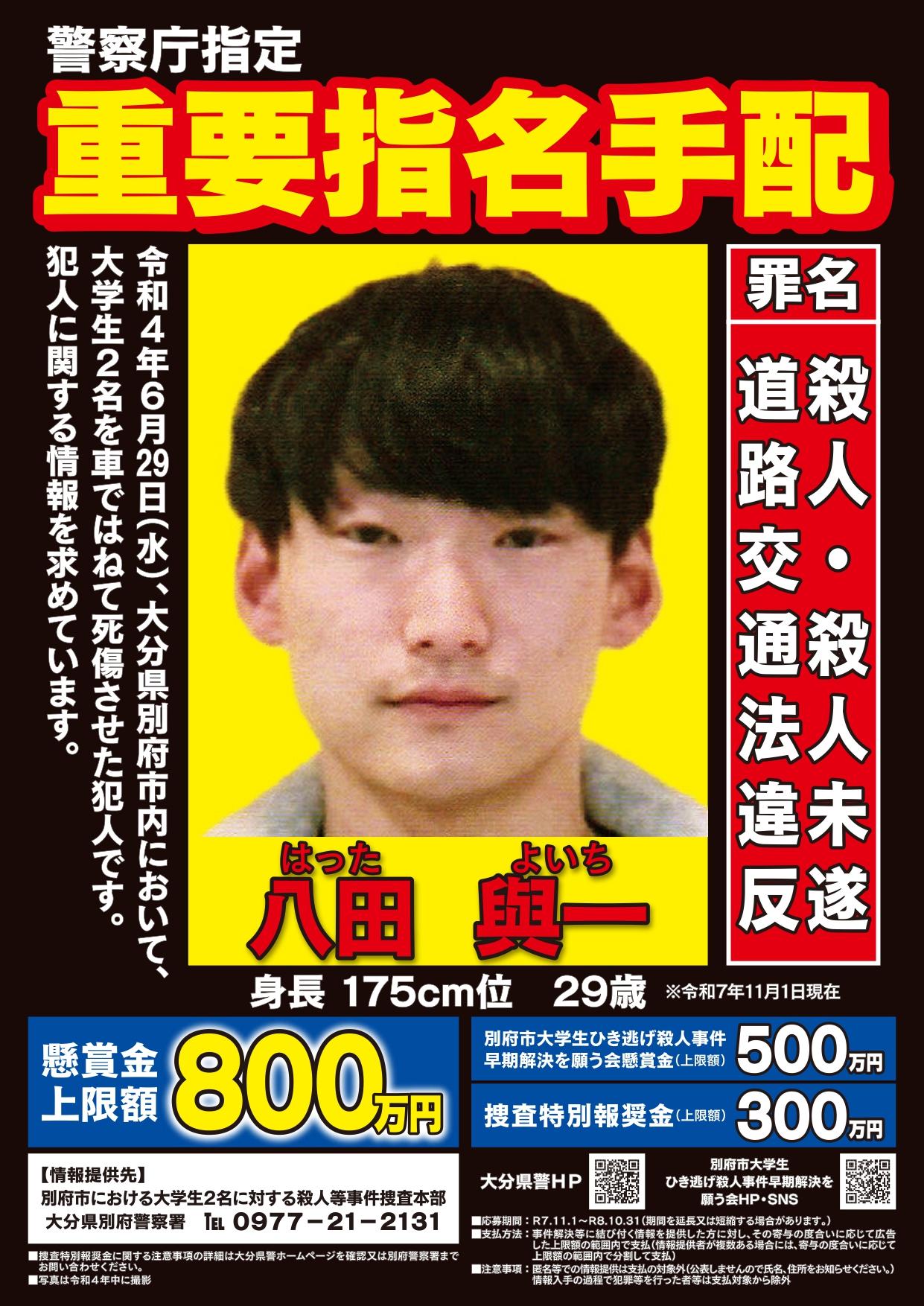 別府死亡ひき逃げ事件の八田與一容疑者をSNSで全力捜査(@beppunegaukai)がシェアした投稿